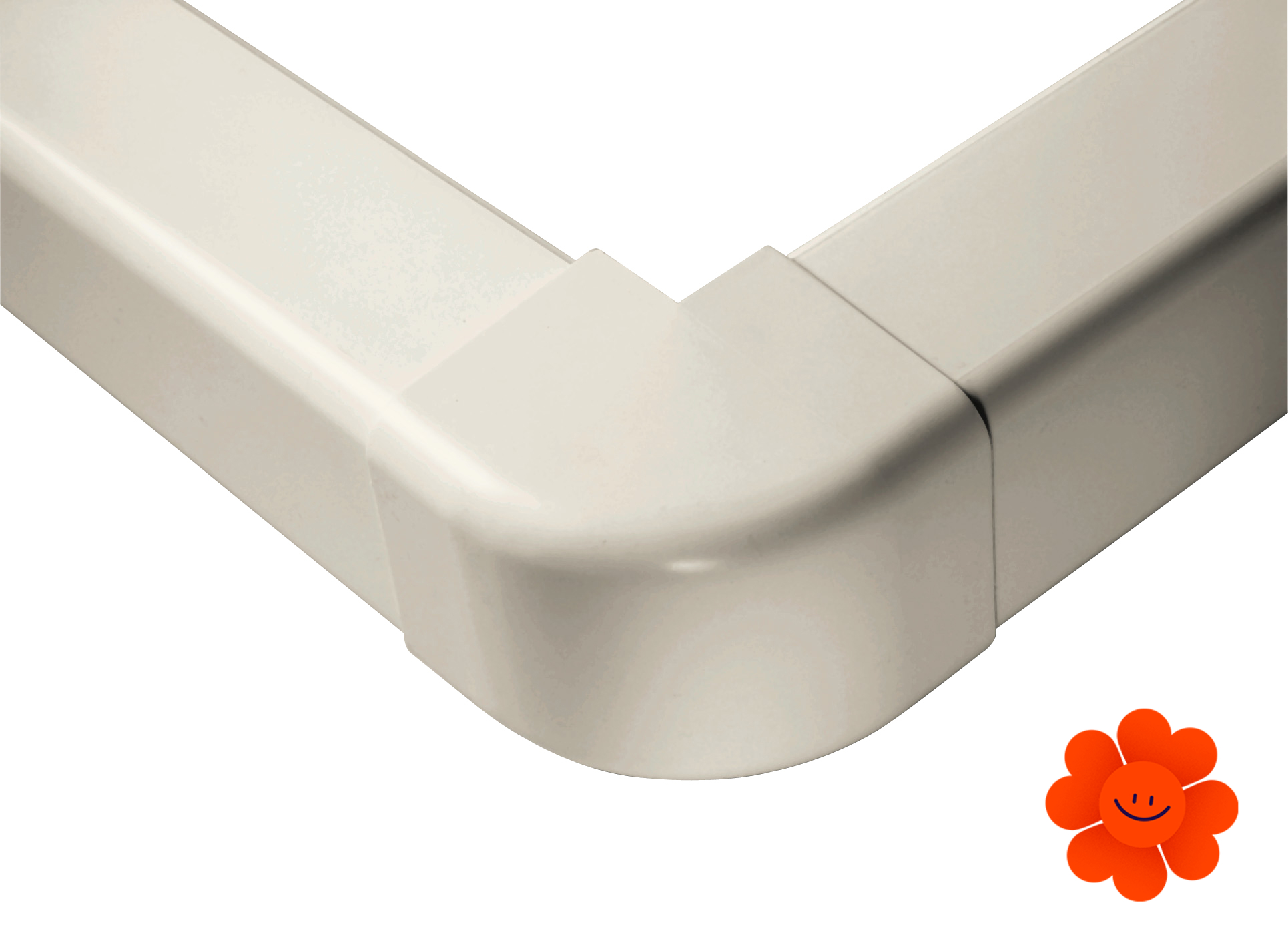 Außenecke 0906AE aus dem Kunststoff dient zur Verbindung von zwei Kunststoffrohren für die Verlegung von Klimaleitungen.