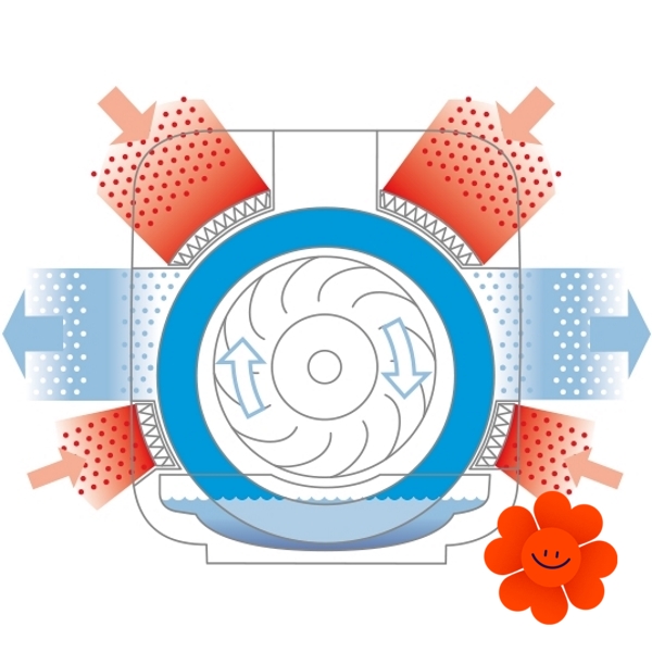 • Ausgezeichnete Reinigungsfähigkeit dank dem Hybridfilter (HEPA und Kohlefilter) und hohen Luftdurchfluss - bis 190 m³/h