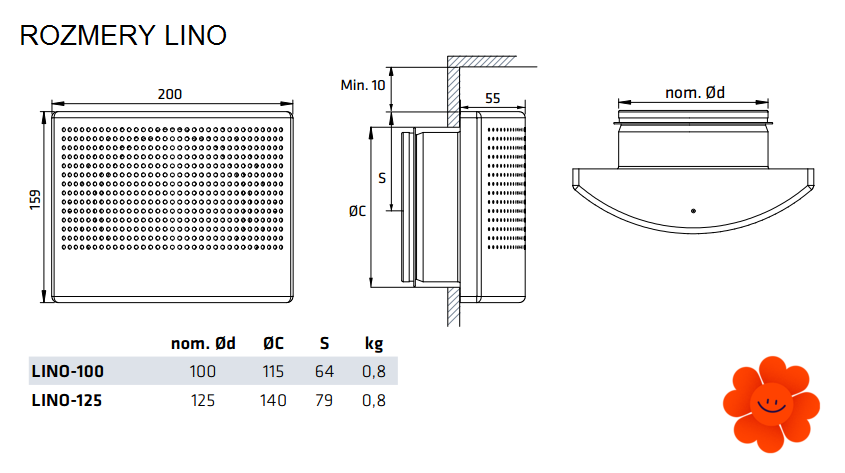LINO ist ein Zuluftventil mit gutem Zug, einfacher Wartung und niedriger Konstruktionshöhe nur 55 mm in dickstem Punkt. Es wird in der Farbausführung Verkehrweiß (RAL 9016) hergestellt. Der Luftvolumenstrom kann mithilfe von Magnetbändern reguliert werden und die Luft dringt durch die Rundlöcher.