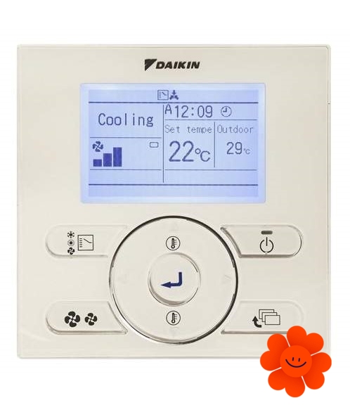 Diese Standardkabelsteuerung enthält den mehrsprachigen Volltextdisplay mit Hintergrundbeleuchtung, Wochentimer, integrierten Temperatursensor, die Steuerung der VAM-Einheiten, Limitierung und Darstellung der Raumtemperatur.