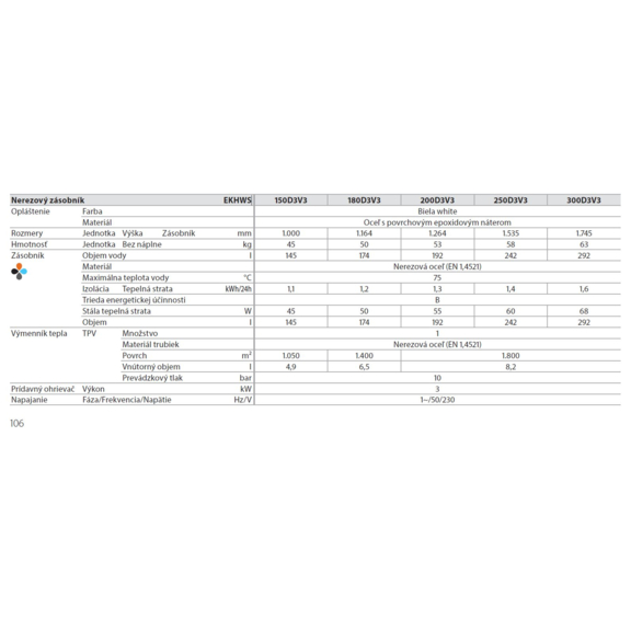 Charakteristik des Wasserspeichers Daikin EKHWS-D3V3