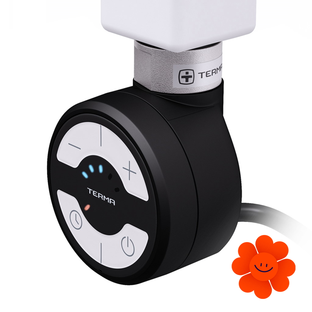 Regler MOA mit dem minimalistischen Deisgn und den großen Drucktasten betätigt man leicht. Mit Drucktasten können Sie Temperatur des Heizelementen einschalten und ausschalten oder ändern. MOA bietet auch Möglichkeit des 2-stündigen Zeitgebers, in diesem Fall drücken Sie nur Drucktaste und Regler schaltet nach 2 Stunden selber aus. Diese Funktion ist praktisch, wenn Sie z. B. nur Handtücher trocknen wollen. Das elektrische Heizelement erwärmt und gleichzeitig kontrolliert genau seine Temperatur.