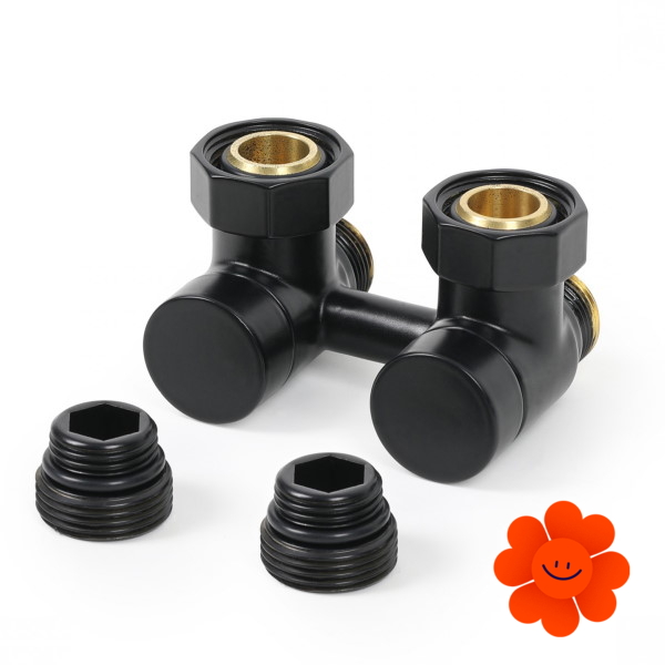 DK Terma Thermostatisches Eck-Mittelset mit Doppelrücklauf Schwarz Matt