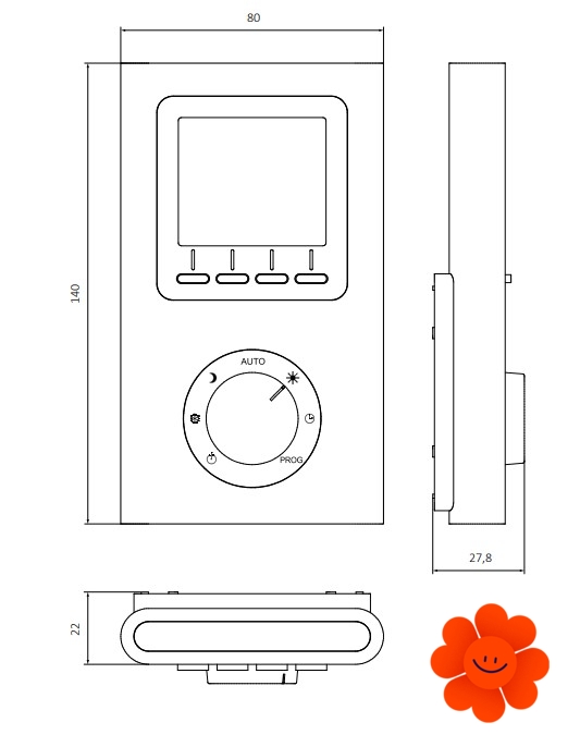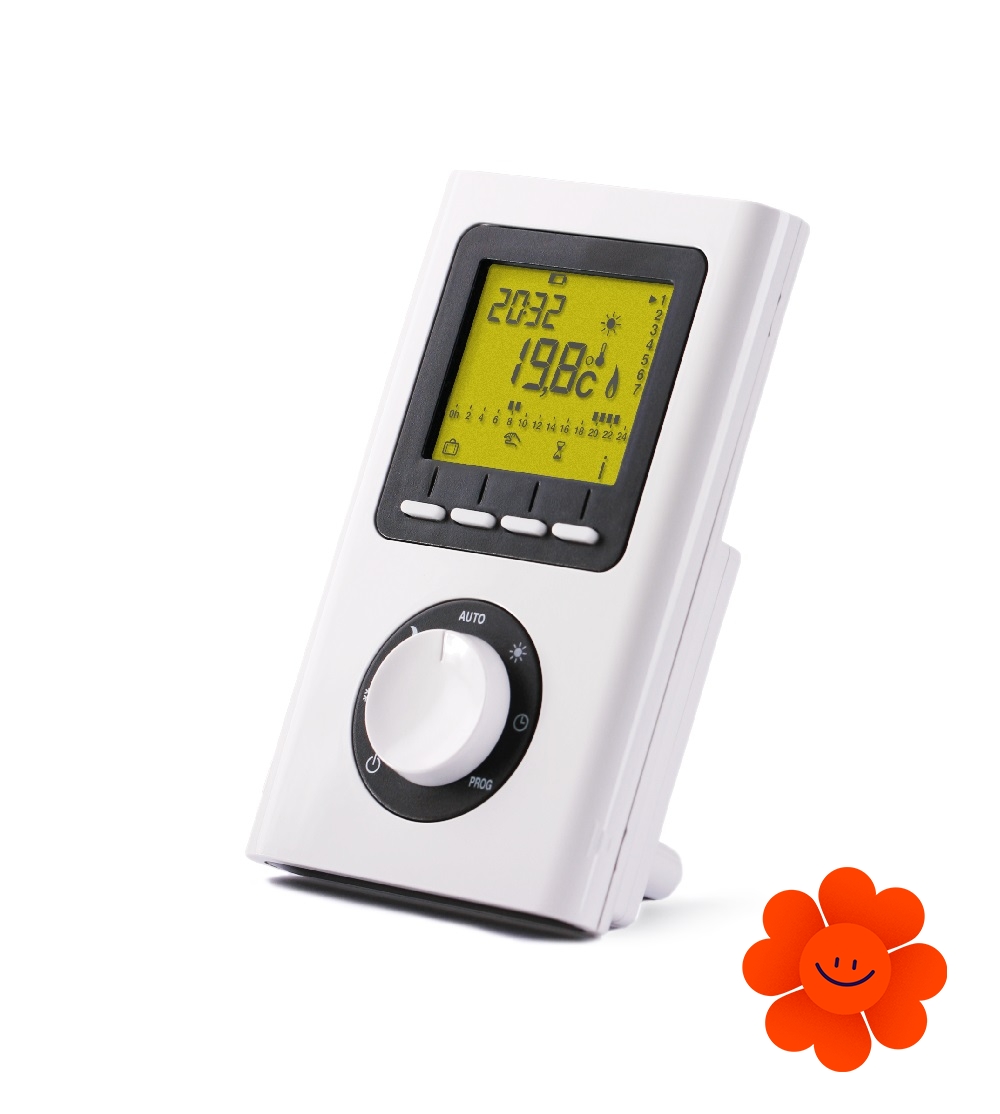 Der Terma TTIR1 ist ein wöchentlich programmierbarer Wand- oder Handregler, der die Temperatureinstellung im Bereich 10-30°C ermöglicht. Der Regler hat zwei Modi, und zwar manuell, mit dem die eingestellte Temperatur jederzeit geändert werden kann, und automatisch, mit dem der Regler den Heizkörperbetrieb während der ganzen Woche reguliert.