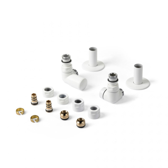 Das manuelle Design-Winkelset der Marke Terma mit der Auswahlmöglichkeit einer beliebigen maßgeschneiderten Farbausführung, das Set kann also an den beliebigen Heizkörper oder ein anderes Zubehör angepasst werden.
