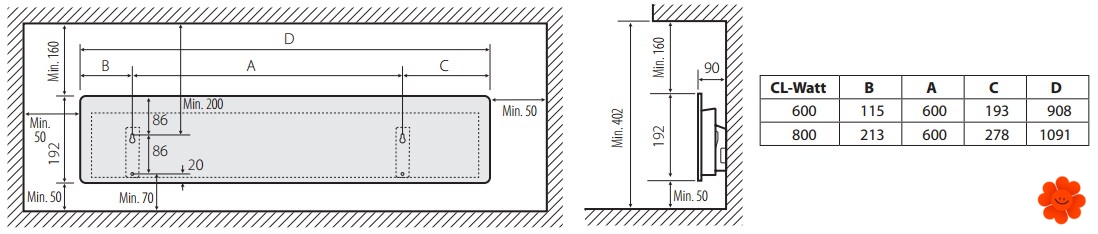 - Die Steckdose kann man auch hinter dem Konvektor anbringen, damit man die Kabel und Steckdose nicht sieht.