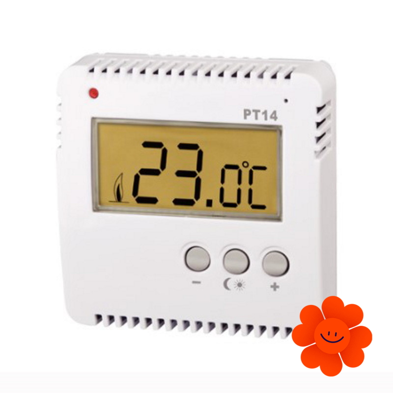Der Elektrobock PT14 ist ein digitaler Raumthermostat zur Temperaturregelung in Kombination mit anderen Heizgeräten wie Infrarotpaneelen, elektrischen Konvektoren, Ventilatoren oder elektrischen Heizkörpern. Die Bedienung ist einfach über zwei Tasten, die die Temperatur in 0,5 °C-Schritten regeln. Der Thermostat verfügt über grundlegende Funktionen mit der Möglichkeit, Tages- und Nachttemperatur einzustellen. Durch die Regelung des angeschlossenen Geräts können Sie bis zu 30 % Energie einsparen.