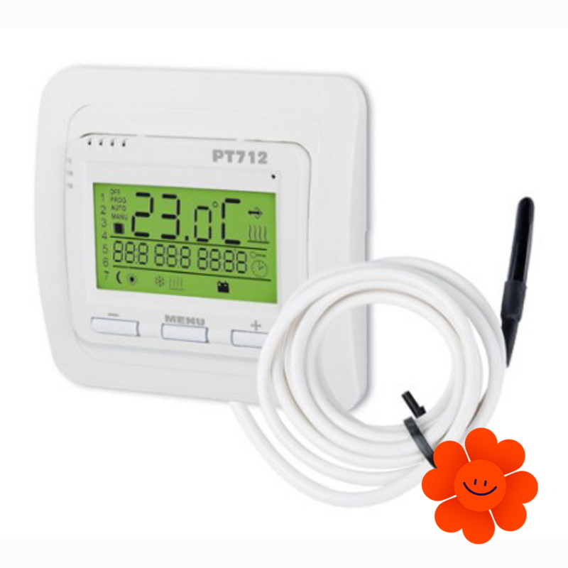 Der Elektrobock PT712-EI ist ein digitaler Thermostat zur Regelung elektrischer Fußbodenheizungen, wie Heizkabel, Matten oder Folien. Der Thermostat verfügt über einen externen Bodensensor, mit dem die Fußbodenheizung nach Raumtemperatur (für komfortable Raumtemperatur), Bodentemperatur (z. B. in Badezimmern, wo eine höhere Bodentemperatur gewünscht ist) oder einer Kombination von beidem geregelt werden kann (komfortable Raum- und Bodentemperatur gleichzeitig). Durch die Verwendung des Thermostats kann ein angenehmes Raumklima zu bestimmten Zeiten erreicht und gleichzeitig Heizkosten gesenkt werden.