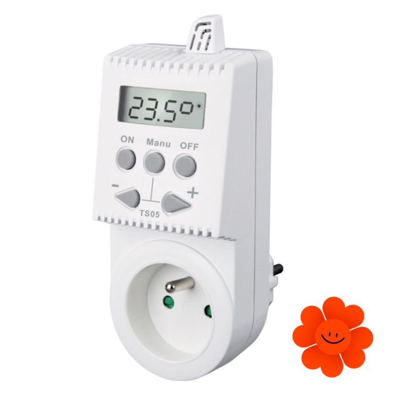 Die Elektrobock TS05 ist eine Steckdose, bei der die Temperatur im Bereich von 3-40 °C eingestellt werden kann. Die Steuerung erfolgt einfach über zwei Tasten, die die Temperatur in 0,5‑°C‑Schritten regulieren. Auf dem Display über den Tasten wird nach Anschluss der Steckdose die aktuelle Raumtemperatur angezeigt. Die Steckdose bietet grundlegende Funktionen zur komfortablen Temperaturregelung und verfügt außerdem über eine permanente Abschaltfunktion (OFF).