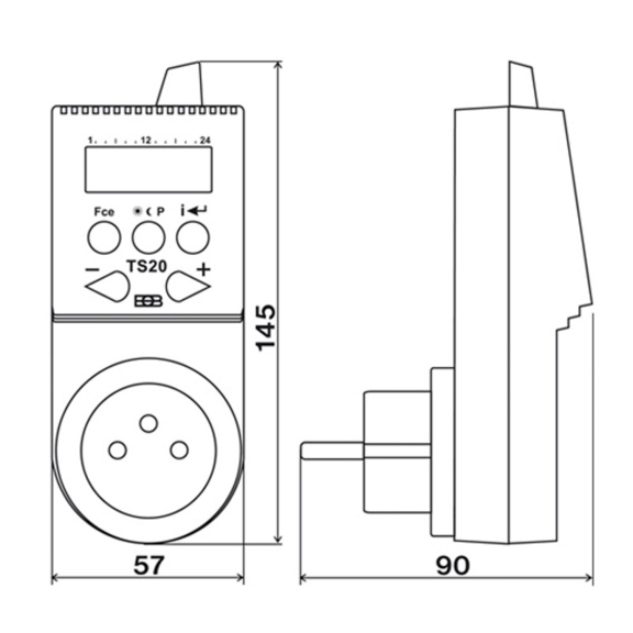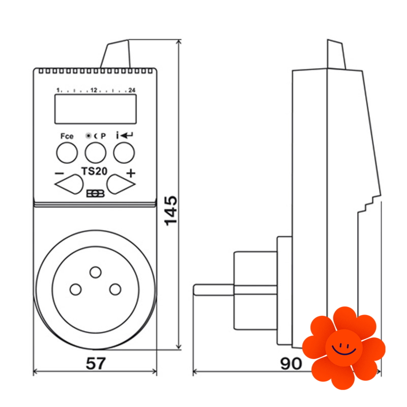 Die Elektrobock TS20 ist eine digitale, programmierbare Steckdose zur automatischen Regelung elektrischer Heizgeräte, bei der die Temperatur im Bereich von 3-40 °C eingestellt werden kann. Die Steuerung erfolgt einfach über zwei Tasten, die die Temperatur in 0,5‑°C‑Schritten regulieren. Auf dem Display über den Tasten wird nach Anschluss der Steckdose die aktuelle Raumtemperatur angezeigt. Die Steckdose bietet erweiterte Funktionen, mit denen Temperaturprogramme automatisch geregelt werden können. Außerdem verfügt sie über eine permanente Abschaltfunktion (OFF). Durch die automatische Temperaturregelung des angeschlossenen Geräts können Sie bis zu 30 % Energie sparen.