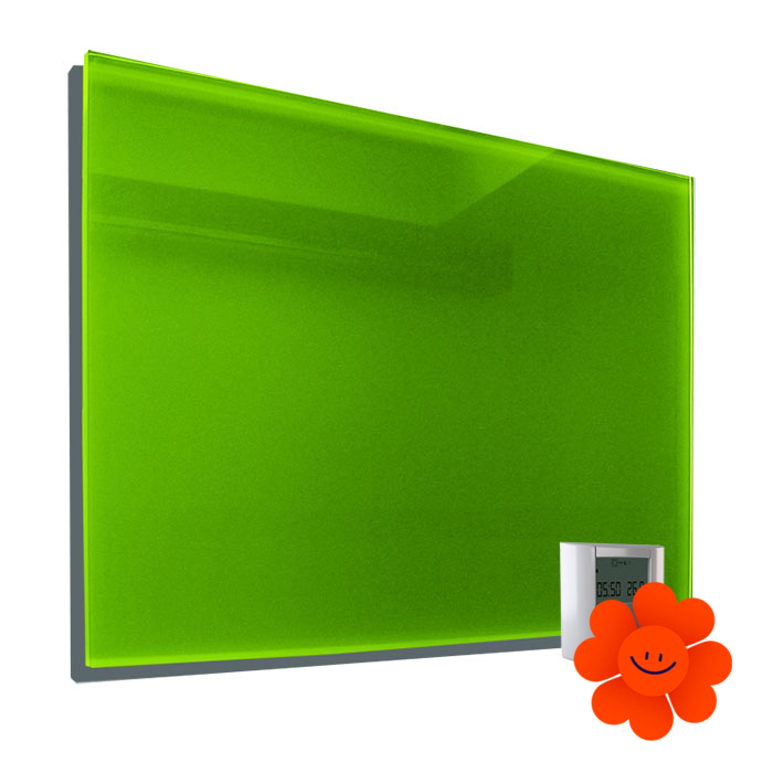 Die GR+ Strahlungsheizplatten sind in 5 Farbausführungen (weiß, gelb-grün, rot, schwarz und spiegelglas) verfügbar.