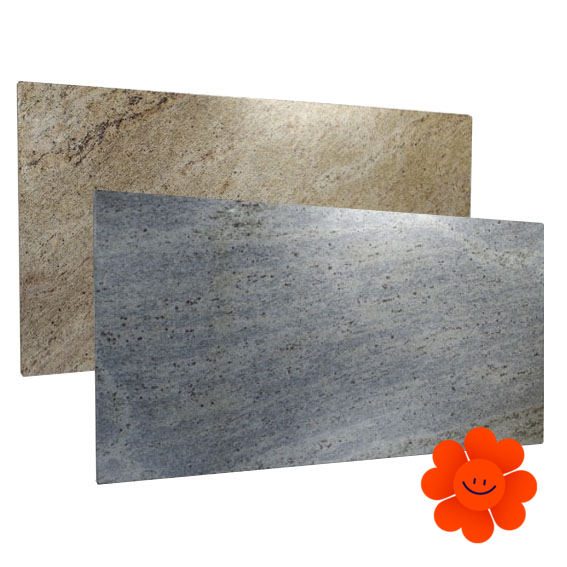 Die Granitheizplatten Fenix sind in zwei Farbvarianten Madura (beige) und Kashmir (grau) verfügbar.