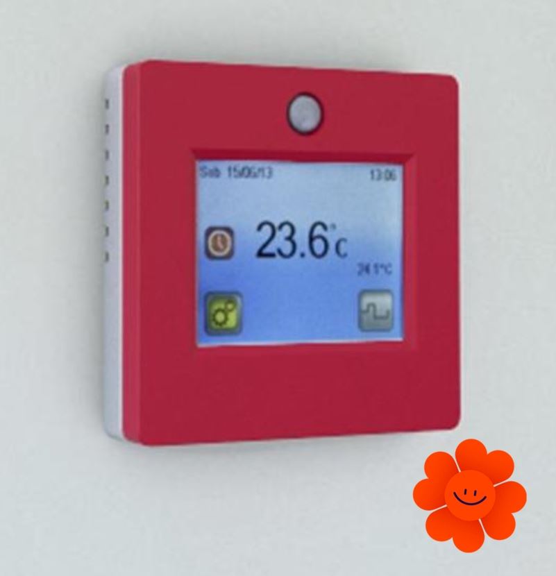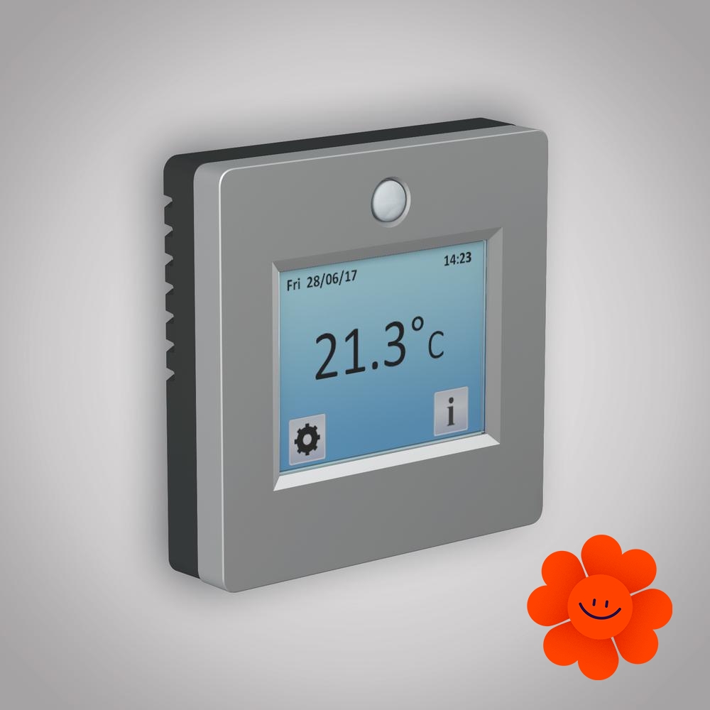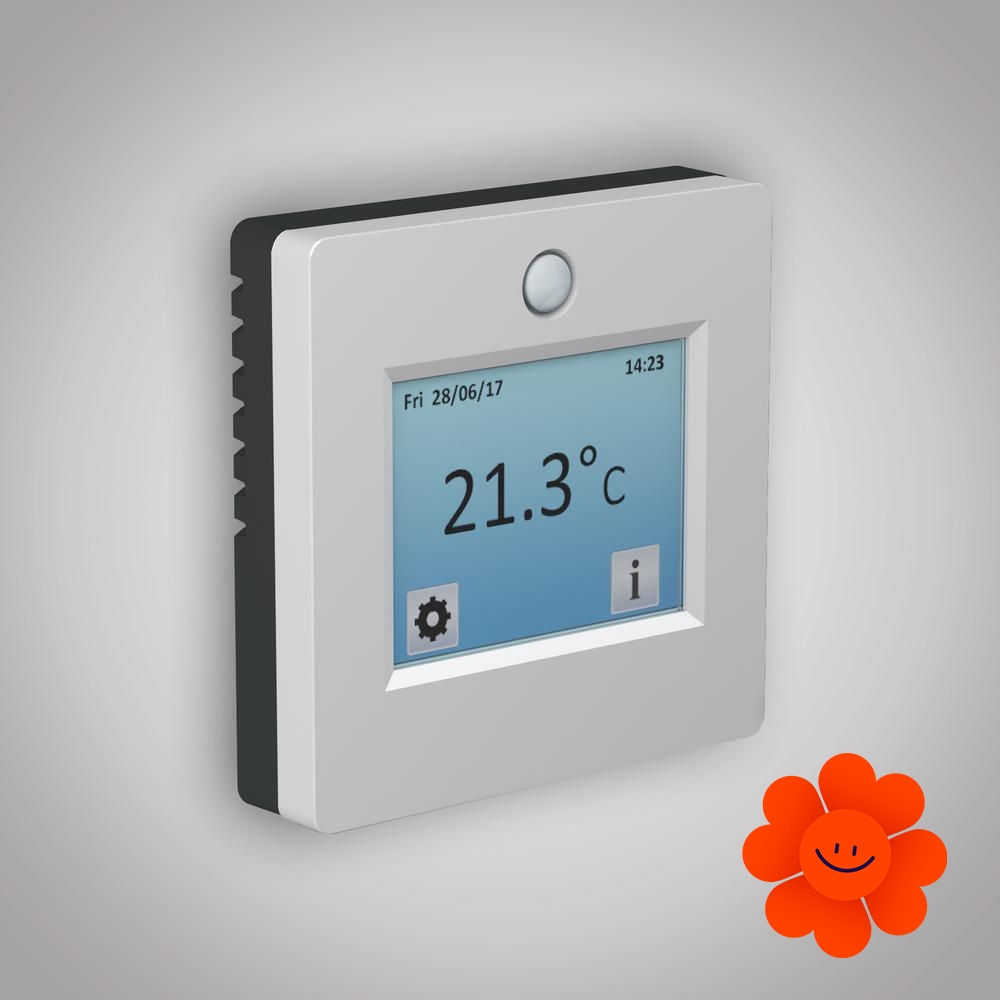 Fenix TFT-2 ist ein elektronischer programmierbarer Thermostat mit dem Touchscreen mit wählbarer Hintergrundfarbe. Sie können aus 6 Sprachoptionen wählen.