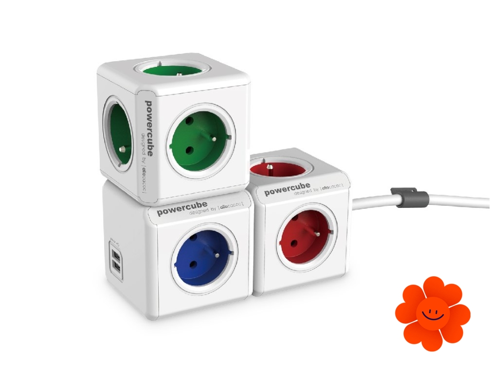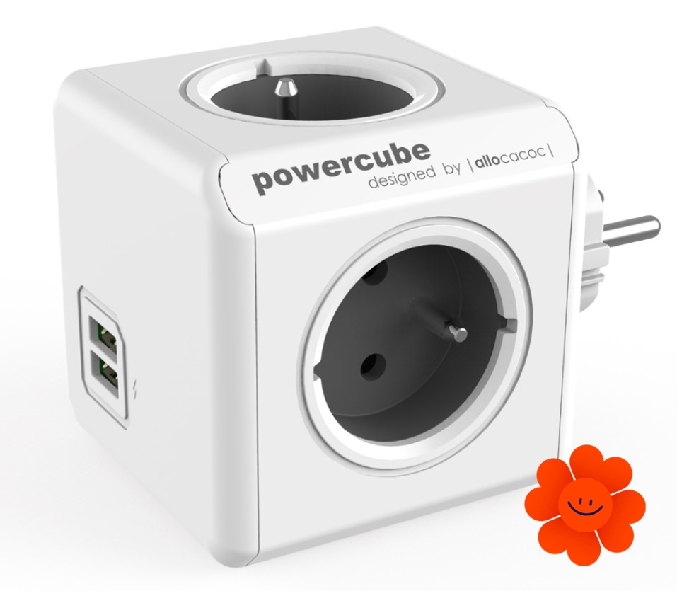 Sie können gleichzeitig einfach bis 4 Elektrogeräte anschließen und dank 2 USB Anschlüssen können Sie auch Ihre Mobilgeräte aufladen (Tablet, Handy, usw.). PowerCube ermöglicht schnelle Ladung. Sie können die USB Version allein gerade in einer Steckdose anschließen oder es ist möglich, sie mit anderen PowerCube Versionen zu kombinieren.