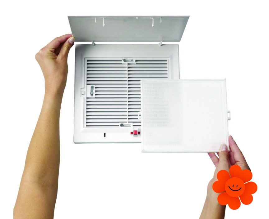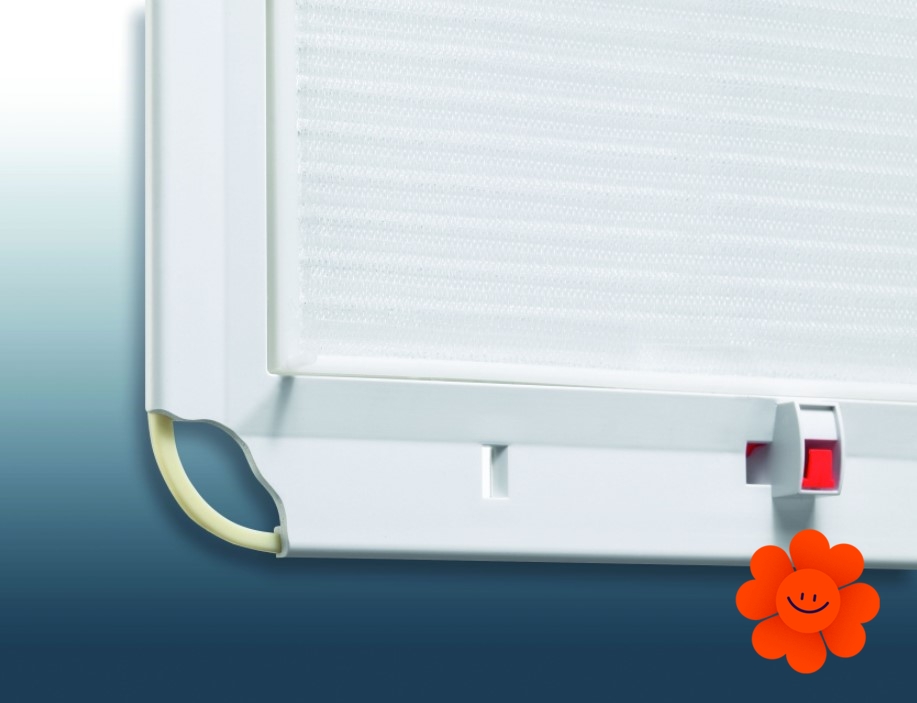 Die Packung enthält einen Ventilator, zu welchem Steuertafel, Elektronik gehören und eine plane Frontplatte, die weiß ist. Unter die Deckung der Frontplatte befindet sich einen Filter, der dank seiner langen Lebensdauer abwaschbar und reinigungsbeständig ist. Die Frontplatte ist mit einer Kontrolllampe ausgestattet, die für die Signalisierung des verstopften Filters dient.