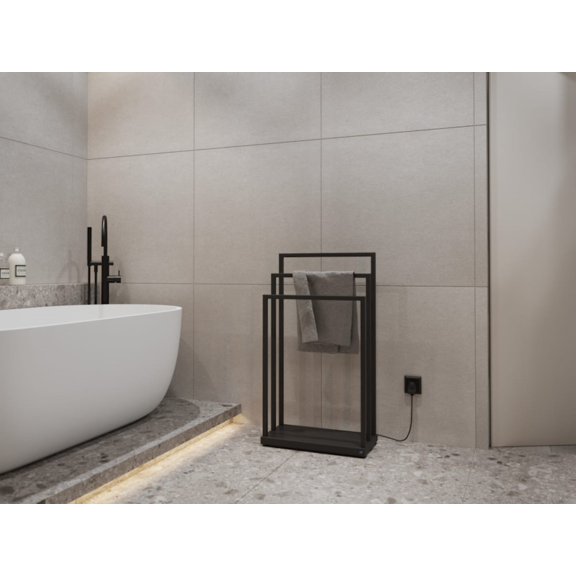 INSTAL-PROJEKT Mobilo ist ein moderner und mobiler Textiltrockner, der einen schnellen und einfachen Zutritt zu trockenen und warmen Handtüchern und Kleidern bietet. Er hat eine stabile Konstruktion mit rutschfesten Füßen. Er ist leicht und hat ein abnehmbares Kabel, was seine Übertragung und Lagerung vereinfacht. Die Bedienung ist intuitiv und befindet sich direkt in der Steckdose.