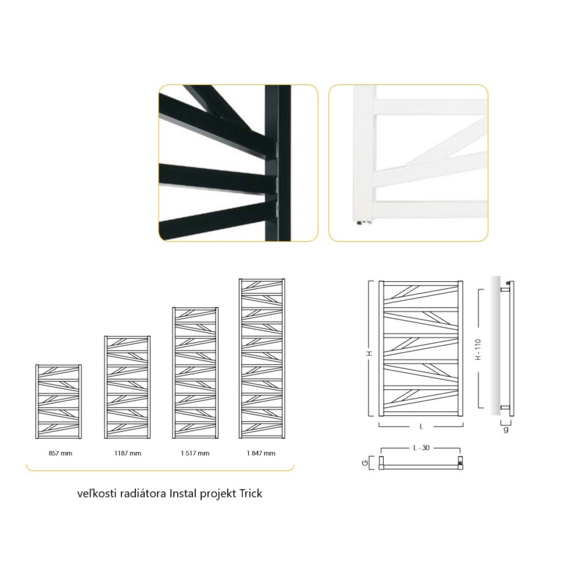 Der Heizkörper Trick ist eine Lösung für jeden, der die modernen und unkonventionellen Zugriffe im modernen Design schätzt. Der Heizkörper produziert die Gesellschaft INSTAL-PROJEKT, der Designer und auch viele Kunden seit Jahren trauen. Den Heizkörper Trick bilden 2 Profiltypen: Vierkant- und Rechteckprofile, in ein eigenartiges Muster geordnet. Er ist aus Stahl hergestellt und dann angestrichen – Farbausführung – zur Auswahl aus Farben der Gesellschaft INSTAL-PROJEKT.