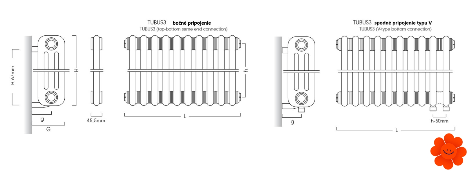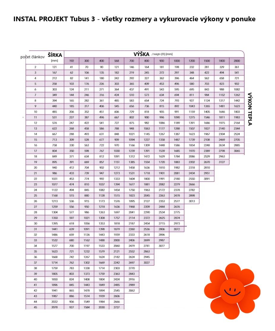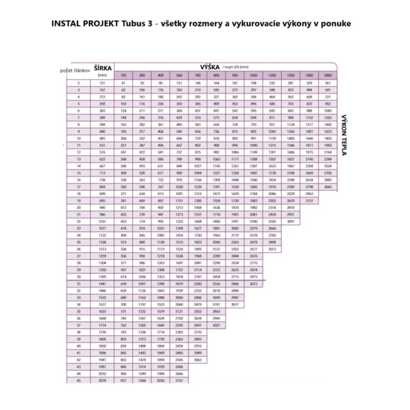 Der Heizkörper Tubus 3 ist ein Modell mit der doppelten Rohreihung, in der Breite von 2 bis 45 Glieder und der Höhe von 192 bis 2000 mm zur Wahl. Die Firma INSTAL-PROJEKT bietet auch den doppelten Tubus 2 und den vierfachen Tubus 4 an.