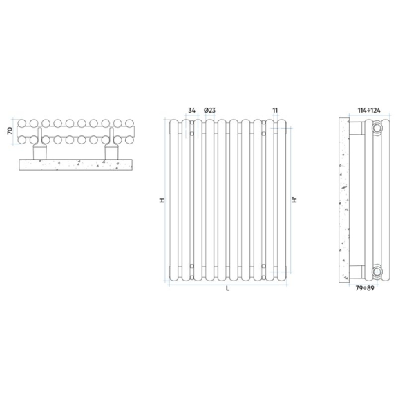 Das Modell Arpa 23_2 zeichnet sich durch eine modulare Bauweise aus, die es ermöglicht, Größe und Leistung nach Bedarf anzupassen. Der Heizkörper ist in 14 verschiedenen Höhen erhältlich, in Konfigurationen von 4 bis 40 Elementen, mit einer Heizleistung von 161 bis 3344 W. Es ist auch eine einreihige Version des Heizkörpers verfügbar.