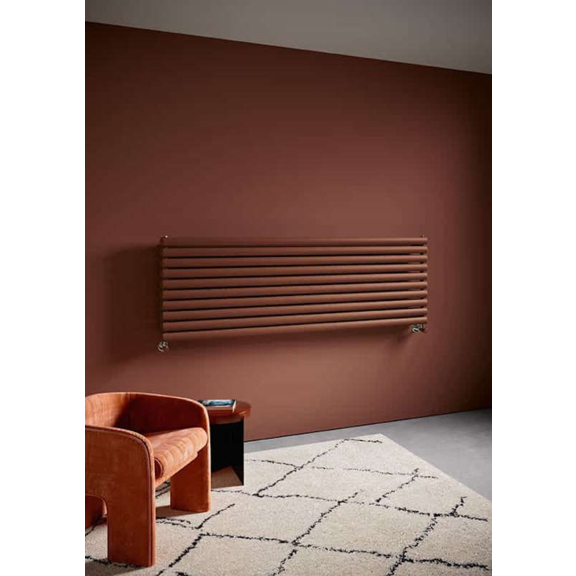 Der horizontale Designheizkörper Ellipsis_H 2 zieht sofort alle Blicke auf sich. Seine eleganten elliptischen Profile schaffen eine charakteristische Silhouette, die dem Raum Stil und ein zeitloses Erscheinungsbild verleiht.