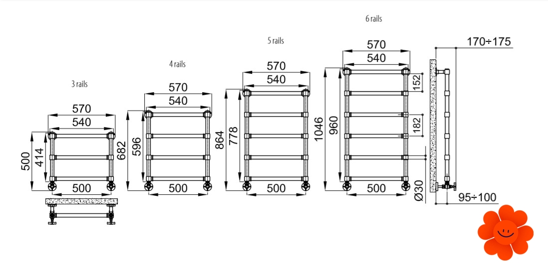- IRSAP Minuette Chrom-Badheizkörper Technische Zeichnung ( 66.85 KB) Herunterladen