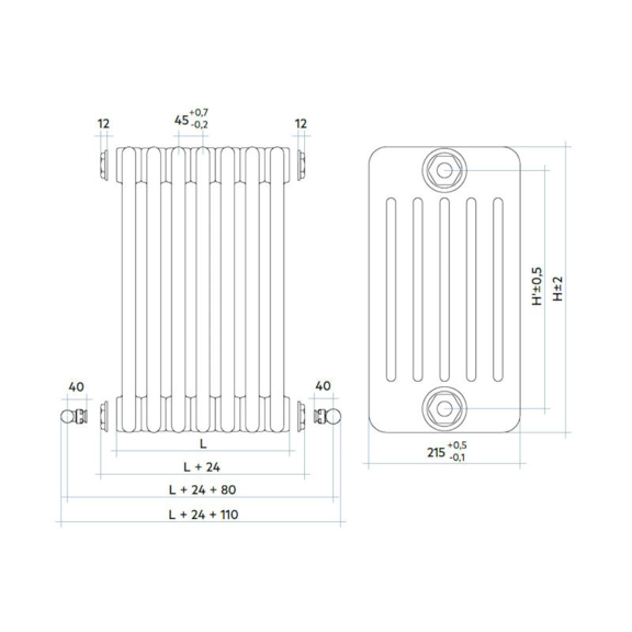 | Heizkörperlänge (mm): | 540 | 585 | 630 | 675 | 720 | 765 | 810 | 855 | 900 | 945 |