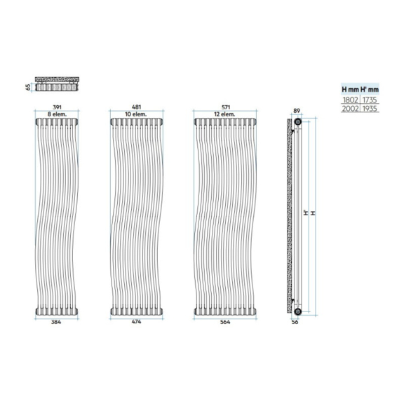 Tesi Runner hat eine Tiefe von 65 mm und wird in zwei verschiedenen Höhen mit 6, 8 oder 10 Zellen hergestellt. Die Heizkörper werden mit höchster Präzision aus hochwertigen und langlebigen Materialien hergestellt und haben eine 10-jährige Garantie auf Farbe und Dichtheit.
