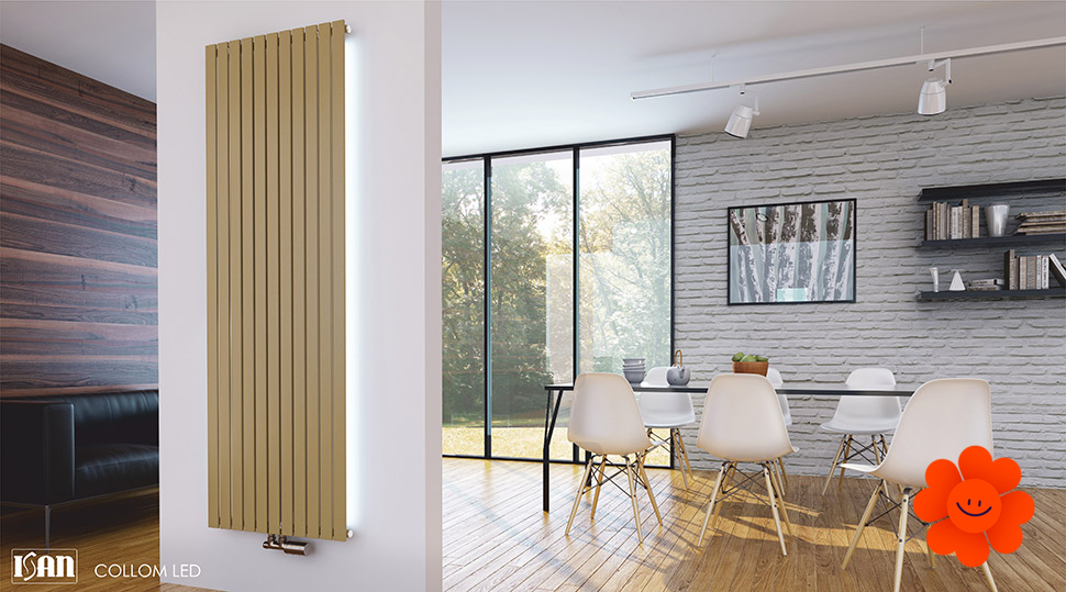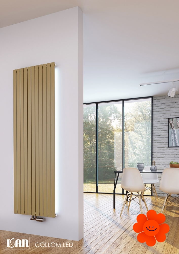 ISAN Collom ist ein Design-Plattenheizkörper mit der LED-Hinterleuchtung. Er verfügt über sehr kleine Tiefe mit Heizrohren, die subtil wirken.