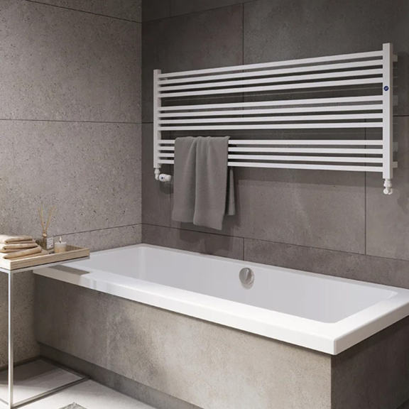 Der horizontale Heizkörper Coron Double ist aus glatten Stahlrohren mit dem Durchmesser von 60 mm hergestellt, die Sie farblich Ihrem Badezimmer anpassen können.