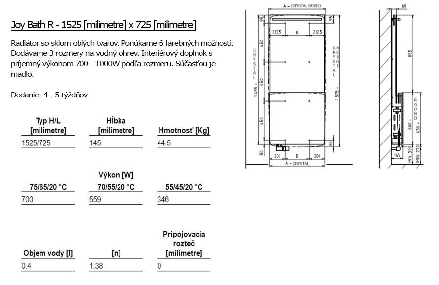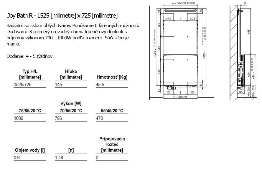 Joy Bath R erwärmt angenehm den ganzen Raum für Ihren Komfort. Zum Bestandteil dieses Glasheizkörpers gehört auch ein praktisches Handtuchhalter, dank dem Sie die Handtücher oder Badetücher trocknen können.