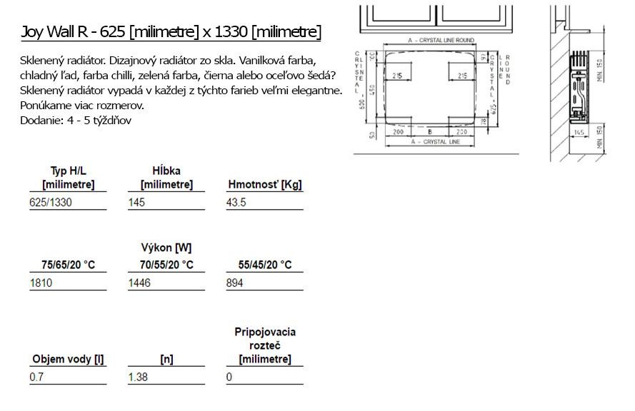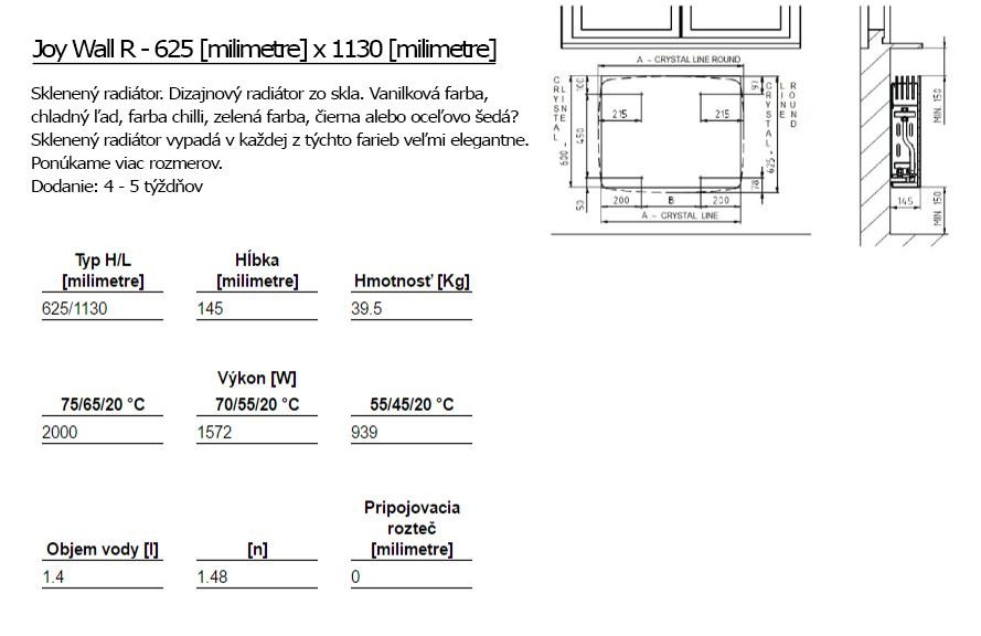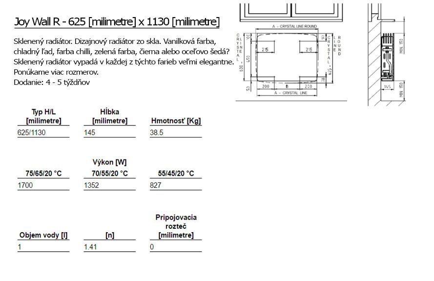 Joy Wall R mit der Wandbefestigung strahlt die angenehme Wärme in das ganze Interieur für Ihren Komfort ab. Sie werden bei der breiten Palette von Größenvarianten begesitert. Der stilvolle Joy Wall R ist in 6 Farboptionen erhältlich. Er ist für den Anschluss an die Zentralheizung bestimmt.