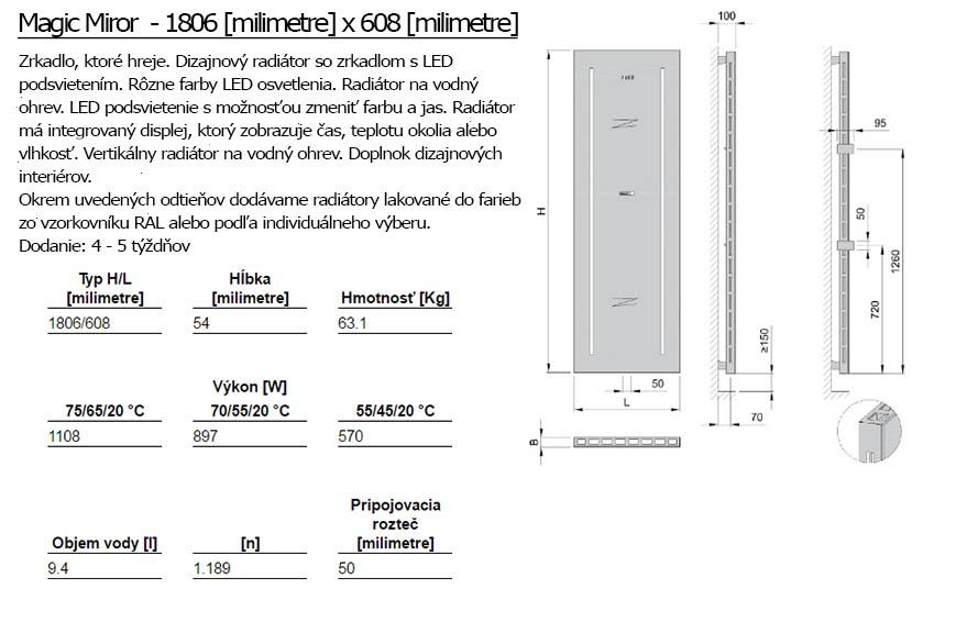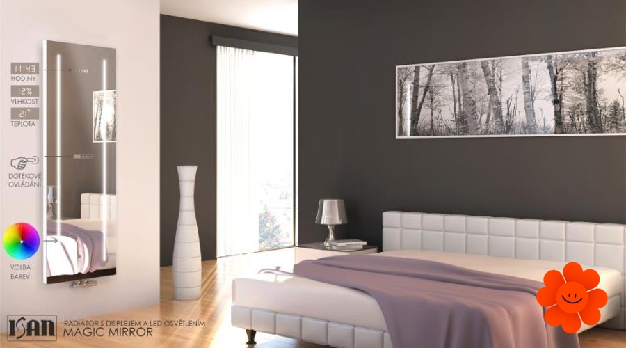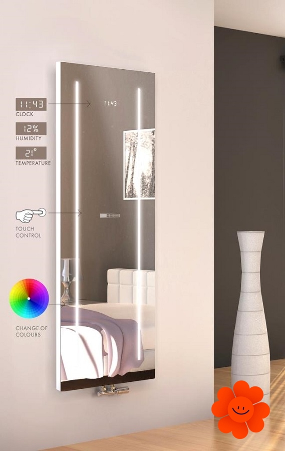 Dieser Heizkörper arbeitet auf der Basis vom Warmwasser-Betrieb. Dank der hohen Leistung und dem minimalistischen Design eignet sich ISAN Magic Mirror für jedes moderne Interieur. Der Spiegel wird um die LED-Hinterleuchtung mit der Möglichkeit der Farb- und Helligkeitsänderung ergänzt. Der Heizkörper verfügt über ein integriertes Display, das die Zeit, Umgebungstemperatur und Feuchtigkeit anzeigt.