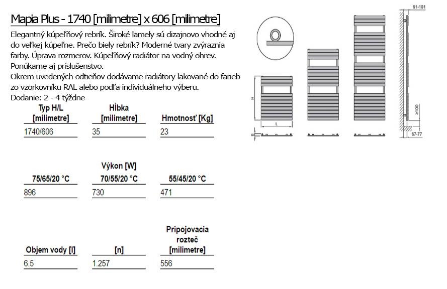 Wählen Sie aus unserem breiten Angebot von Abmessungen und breiter Farbpalette. Passen Sie diesen Heizkörper auf Maß an. Mapia PLUS arbeitet auf der Basis vom Warmwasser-Betrieb.