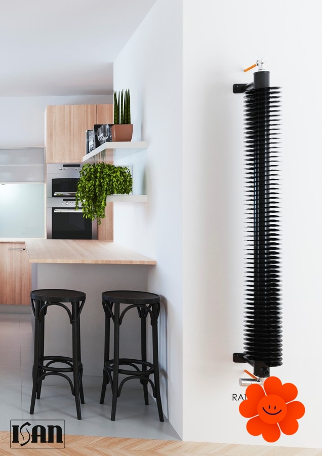 Retro Designheizkörper mit einem Spiralrohr ISAN Spiral RA1 ist eine vertikale Variante des Heizkörpers ISAN Spiral RA1-W. Dieses Modell ist für die Wandmontage bestimmt.