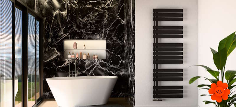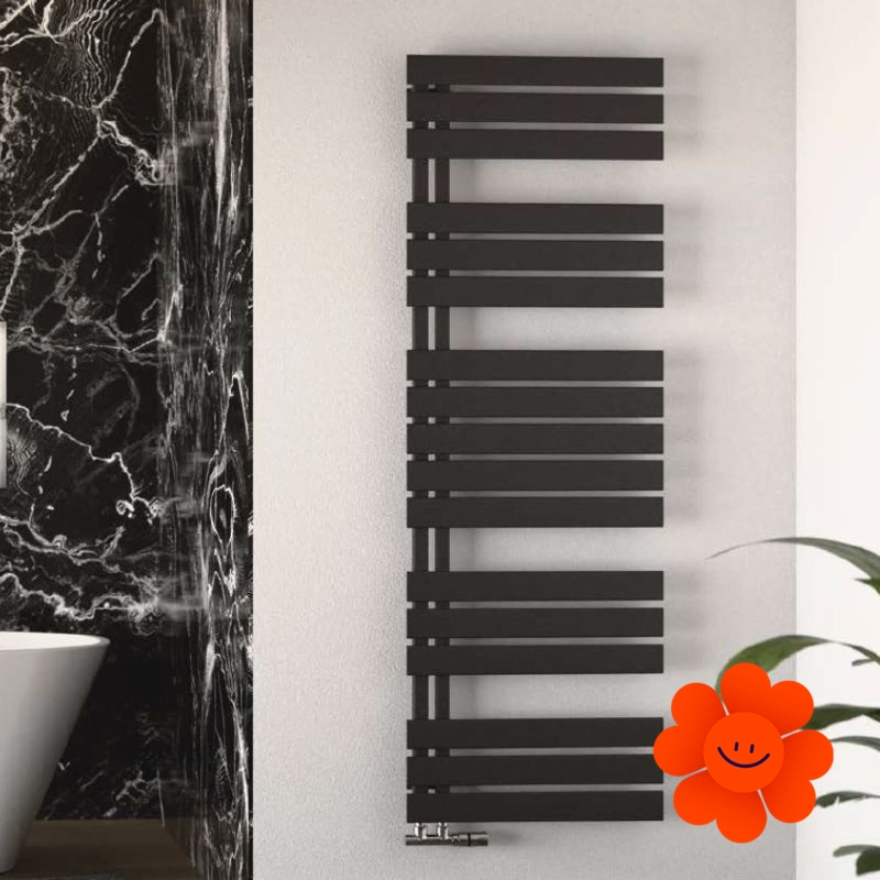 Designheizkörper ISAN Thea fällt sofort durch seine breiten, unregelmäßig angeordneten Profile ins Auge. Er verbindet modernes Aussehen mit praktischer Funktionalität und ist daher ideal zum Aufhängen und Trocknen von Handtüchern geeignet.