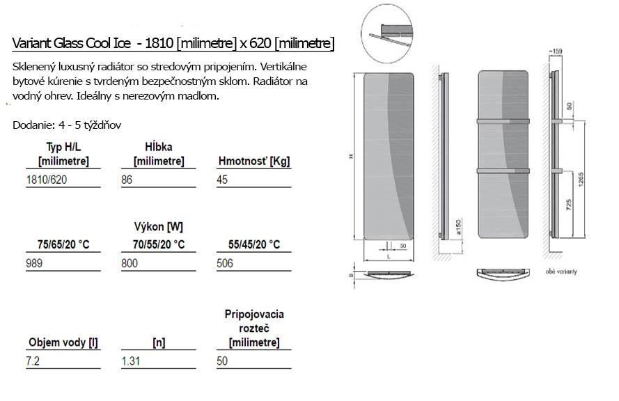 Das stilvolle harte Sicherheitsglas mit der gebogenen Form hindert leistungsfähige Stahlrohre. Variant Glass ist die Garantie der hohen Qualität, Wärmeleistung und schnellen Raumerwärmung. Sie können den Heizkörper um einen Chrom-Handtuchhalter und ein Chrom-Thermostat-Set ergänzen.