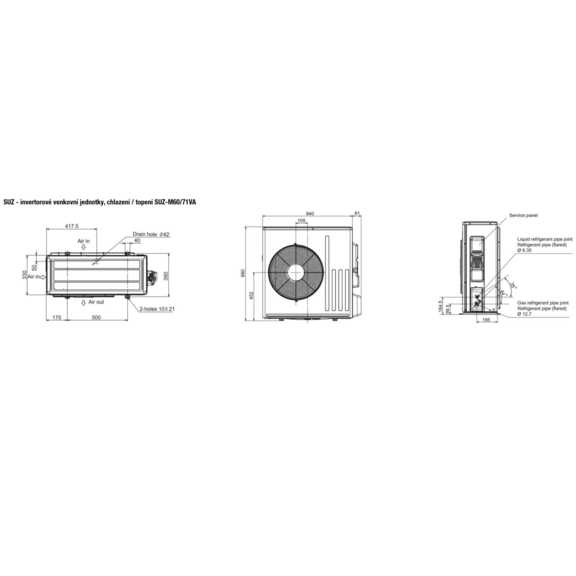 Abmessungen der Außenklimaanlage 880x840x330 (HxBxT) mm