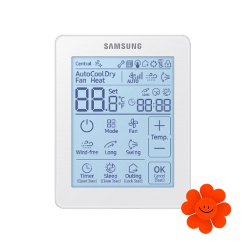 Die Kassettenklimaanlage Samsung Wind-Free AC090NN4DKHEU + AC090MXADKHEU hat die Kühlleistung 9,00 kW und ist für Räume über 46 m2 bestimmt.