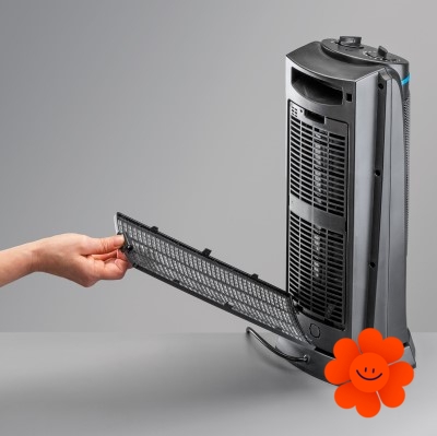 Der Heizlüfter kann einfach demontiert werden, was den einfachen Zugang zum Luftfilter ermöglicht, den sie einfach putzen können.