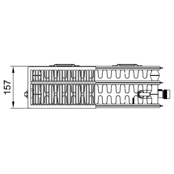 Bei diesem Modell handelt es sich um ein Zweiplatten-Modell mit drei Konvektoren. Dank der seriellen Strömung heizt sich die vordere Platte schnell auf und sorgt für maximalen Komfort, während die hintere Platte den Wärmeverlust minimiert. Dieses System ist ideal für moderne Wärmequellen, insbesondere Wärmepumpen.