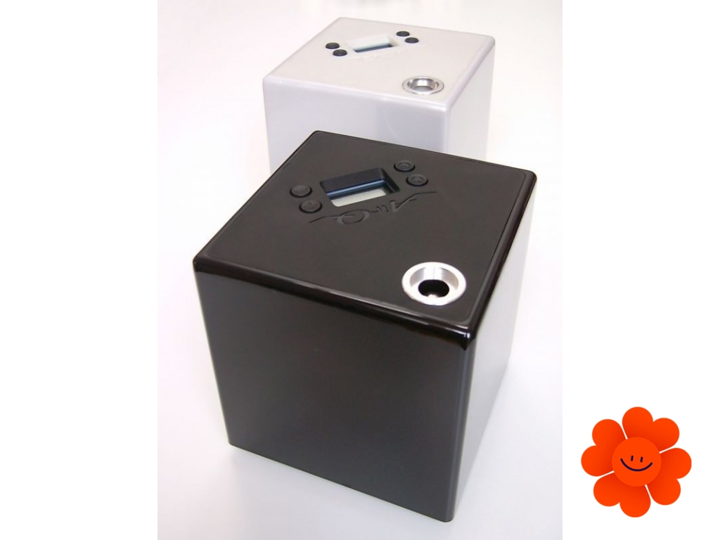 Der Erfrischer wird ein außerordentliches modernes Beiwerk in Ihrer Wohnung oder Ihrem Haus. Er wird in zwei Farbausführungen – perlmuttweiße und schwarze - in Würfelform hergestellt. Es geht um ein Tischgerät mit einem eingebildeten LED Display, das durch einige Knöpfe gesteuert wird. Sie können beliebige Intensität, Lauf- und Ausschaltzeit stellen. Er wird an den Elektrostrom aus der Steckdose angeschlossen.
