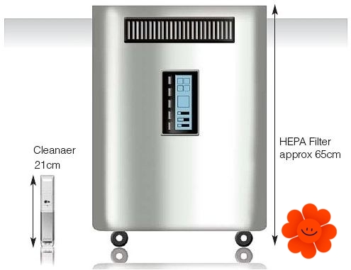 Weitere Vorteile sind besonders leiser Motor (28 dB) sehr genauer Partikelsensor, der die Partikel schon ab die Größe 2,5 μm messen kann.