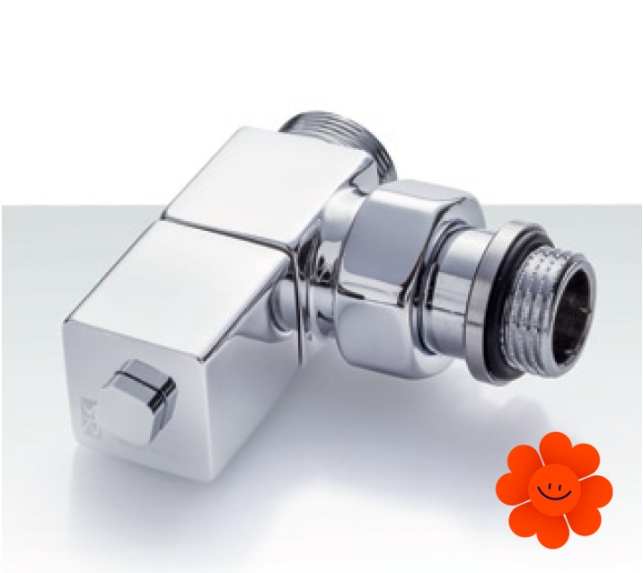 Das stilvolle rostfreie Ventil-Set Esedra enthält ein Regelventil, Verschlussventil und 2 Stücke der Klemmverschraubung für Kupfer- oder Al/PEX Rohre.