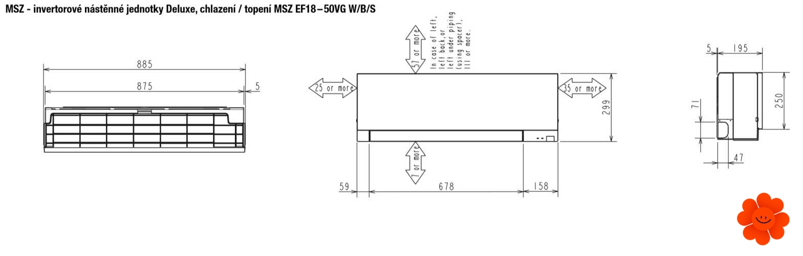 Die Klimaanlage Kirigamine Zen MSZ-EF22VGK (W,B,S) hat die Kühlleistung von 2,2 kW und ist für Räume mit dem Ausmaß bis zu 15 m2 geeignet.