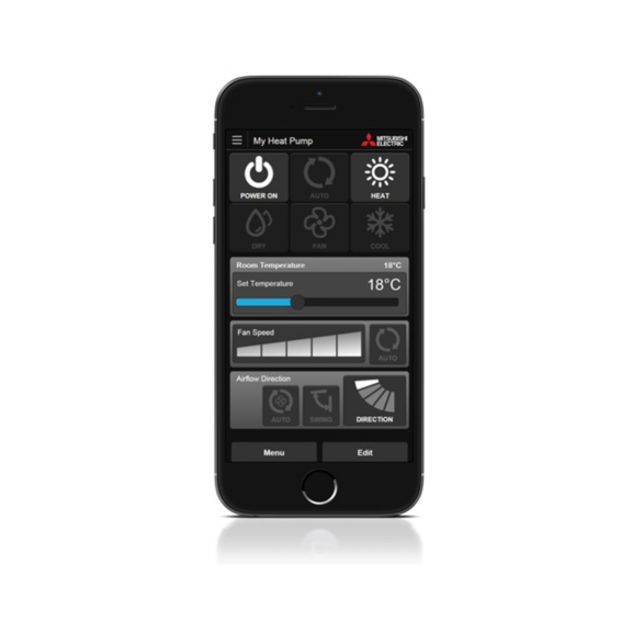 Der WiFi Adapter Mitsubishi MAC-587-IF für die Klimaeinheiten ermöglicht die Steuerung der Klimaanlage per Internet mittels Smartphone oder Tablet. Die App MEL Cloud bietet neben den einfachen Einschalt-, Ausschalt-, Temperatureinstell- und Lüfterfunktionen auch die Timerfunktion und die Anzeige des aktuellen Energiewirkungsgrades.
