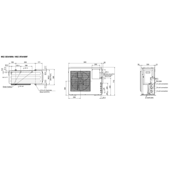 Abmessungen der Außenklimaanlage 710×840×330 (HxBxT) mm