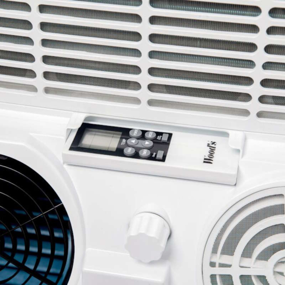 Die WOODS Cortina XL 18K WiFi lässt sich einfach über das digitaleTouch-Panel direkt am Gerät oder bequem per Fernbedienung steuern. Wenn Sie die Steuerung per Smartphone bevorzugen, können Sie die Klimaanlage mit der Woods Connect App (verfügbar für iOS und Android) fernsteuern, die aktuelle Temperatur und Luftfeuchtigkeit anzeigen und das Gerät zur Sprachsteuerung mit Google Home oder Amazon Alexa verbinden.
