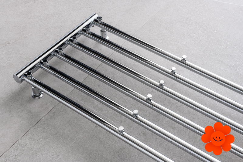 Der Chrom-Heizkörper P.M.H. Coral bietet ein modernes Design in der Verbindung der horizontalen und vertikalen Rohre. Zum Vorteil sind die praktischen Haken zum Hängen von Badetüchern und eines Morgenrocks.