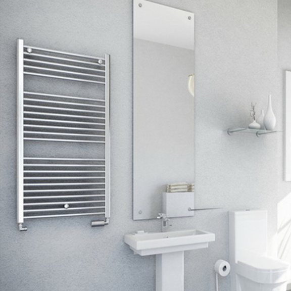 Step B kann auch als ein exklusives Designstück im modernen Badezimmer benutzt werden. Die Form der waagerechten Profile und genügend große Abstände zwischen den Profilen ermöglichen einfaches Aufhängen und Trocknen von Handtüchern.