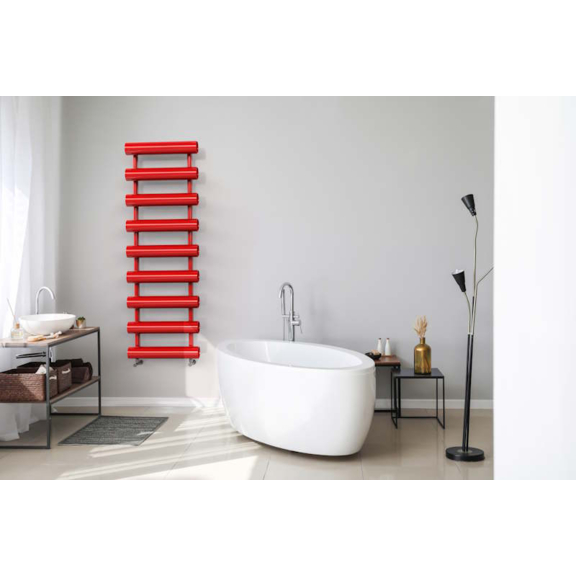 Der Design-Wasserheizkörper RADOX Aramis 2 vereint Funktionalität mit markantem Design. Seine massiven horizontalen Rohre mit offenen Enden dominieren nicht nur optisch den Raum, sondern bieten auch ausreichend Platz zum Aufhängen und Erwärmen von Handtüchern.